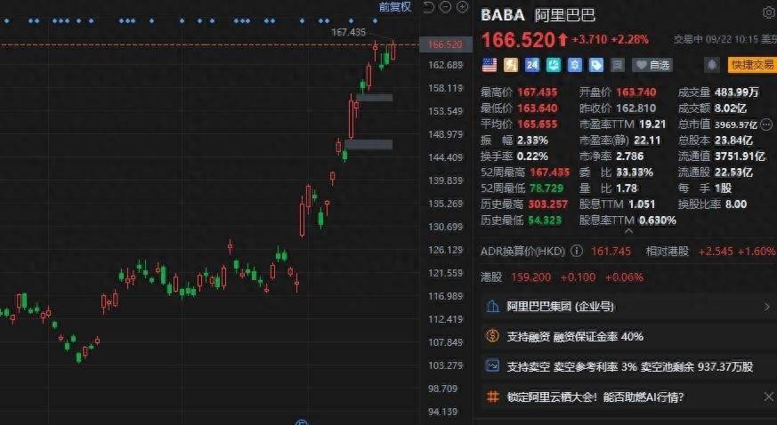 阿里巴巴(BABA.US)美股涨超2%报166.5美元。消息上,花旗分析师在一份研究报告中指出宝牛配,阿里巴巴(BABA)近期的股价可能受到多种因素的支撑。他们表示,阿里巴巴近期推出的店内团购促销活动“恰逢即将到来的出行旺季,有望引导用户前往门店或餐厅消费/用餐”。此外,投资者也正密切关注本周晚些时候阿里巴巴云的云栖大会,该会议可能会对阿里巴巴产生积极的推动作用。花旗对阿里巴巴给予“买入”评级,其美国存托凭证的目标价格为187美元。(格隆汇)